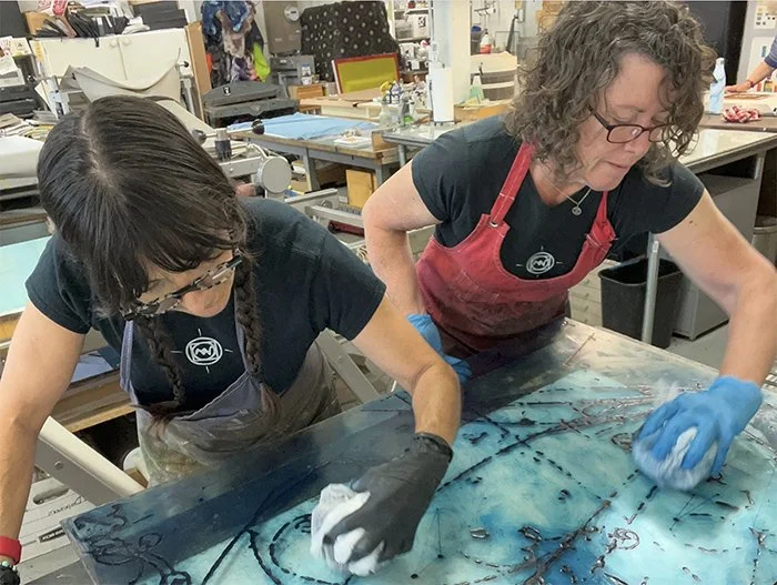 What makes Wagner’s encaustic collagraph work compelling is not novelty alone, but material intelligence. Her decades of experience with wax as a painting medium inform every stage of the print process.